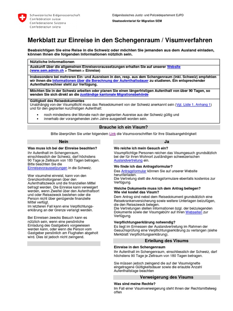 visit full article here : https://www.yumpu.com/de/document/view/21354021/informationsblatt-fur-auslandische-wissenschaftler-auch- Besucher benötigen überdies ein einladungsschreiben eines schweizer staatsangehörigen, der dieses schreiben direkt an die botschaft adressieren sollte. Das einladungsschreiben muss ausweisen, dass der einladende (firma oder privatperson) den antragstellenden erwartet. Dazu zählen situationen wie eine heirat.